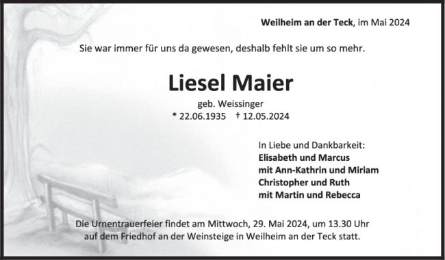 Trauer Liesel Maier