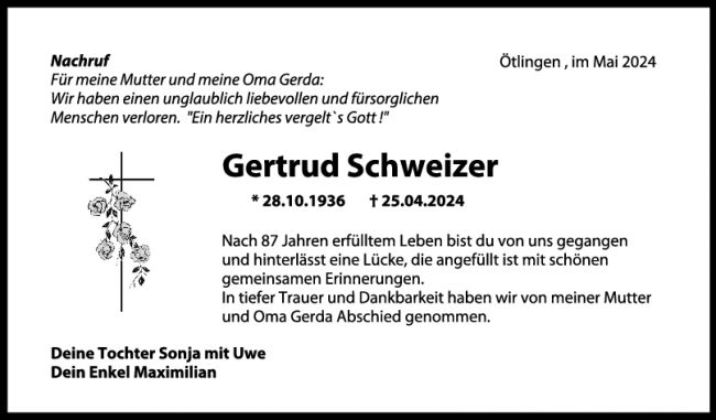 Trauer Gertrud Schweizer
