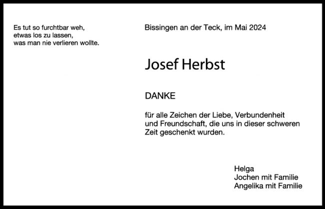 Danksagung Josef Herbst