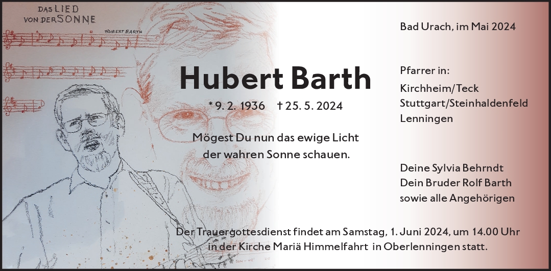 … immer ein Lächeln … ein guter Zuhörer … bescheiden … klug, klar und hellwach für alles, was in der Welt und um ihn herum geschah … dazu: ein Mann und seine Gitarre … – Hubert Barth ist für mich ein Seelsorger par excellence – von dieser Sorte gibt es leider keinen mehr …