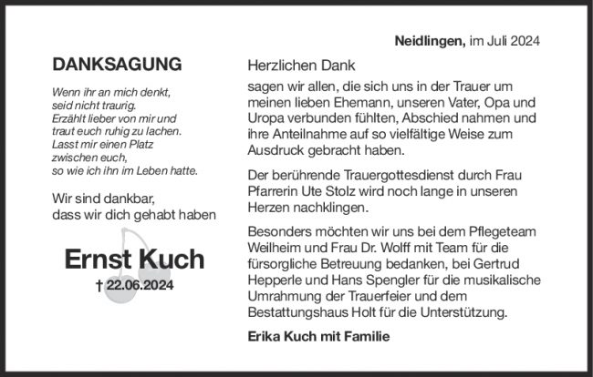 TodesanzeigeVon 16. Juli 20241 Kommentar