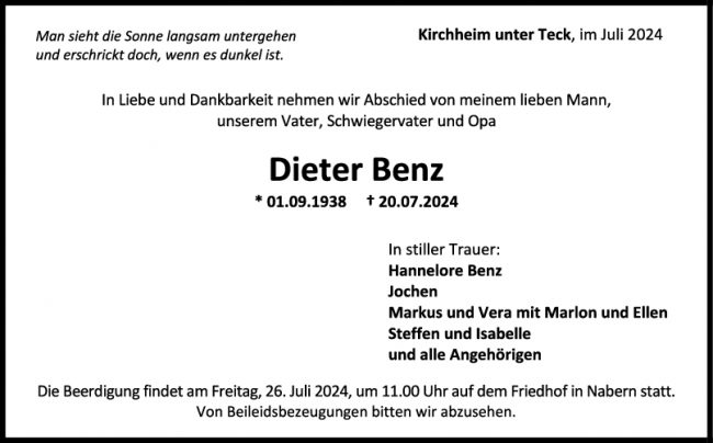 Trauer Dieter Benz