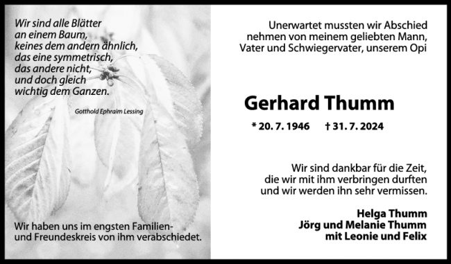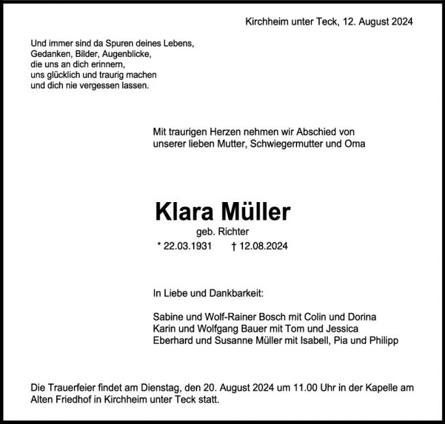 TodesanzeigeVon 17. August 2024Kommentar hinterlassen