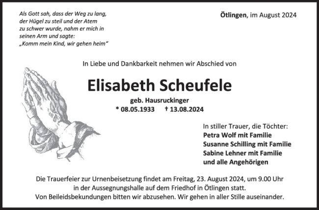 Trauer Elisabeth Scheufele