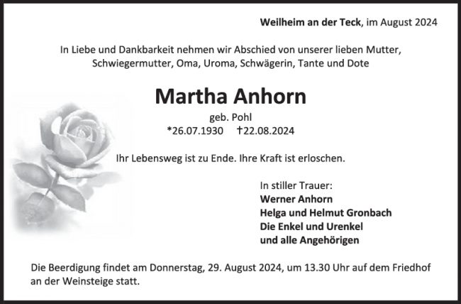 TodesanzeigeVon 24. August 2024Kommentar hinterlassen