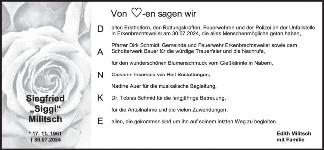 Danksagung Siegfried Militsch