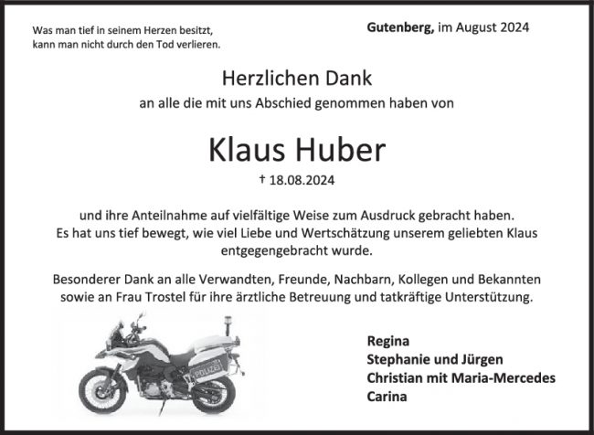 Danksagung Klaus Huber