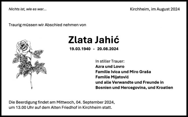 Trauer Zlata Jahic