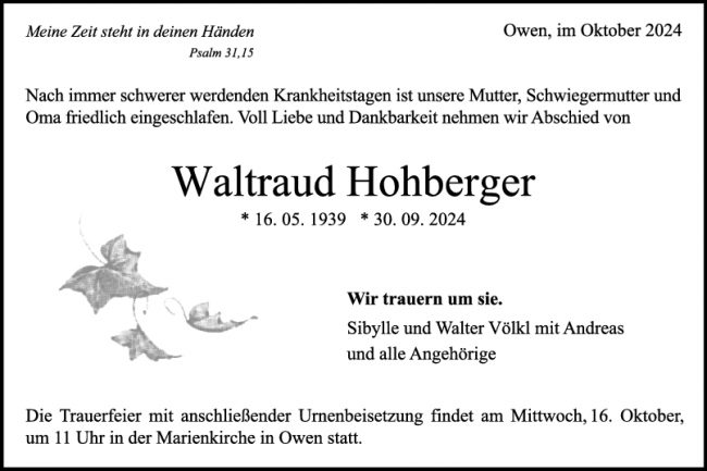TodesanzeigeVon 12. Oktober 2024Kommentar hinterlassen
