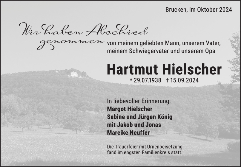 1. Liebe Frau Hielscher Mit großer Trauer lese ich dass ihr Mann verstorben ist . Kommen Sie gut darüber .Das wünschen ich ihnen. Frau Heilemann