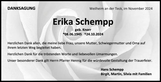 Danksagung Erika Schempp