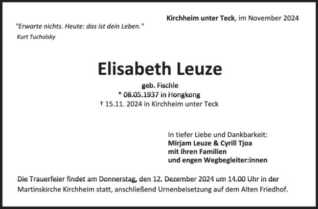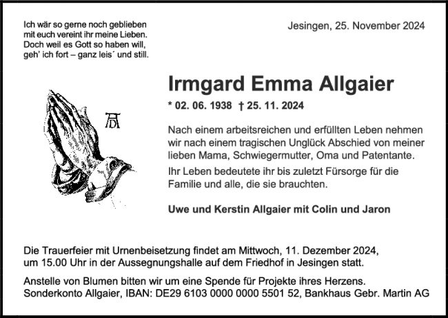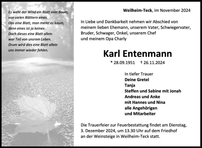 TodesanzeigeVon 30. November 2024Kommentar hinterlassen