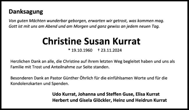 Danksagung Christine Susan Kurrat