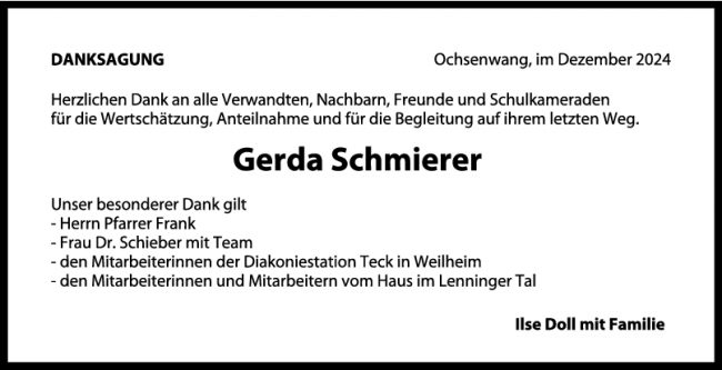 Danksagung Gerda Schmierer