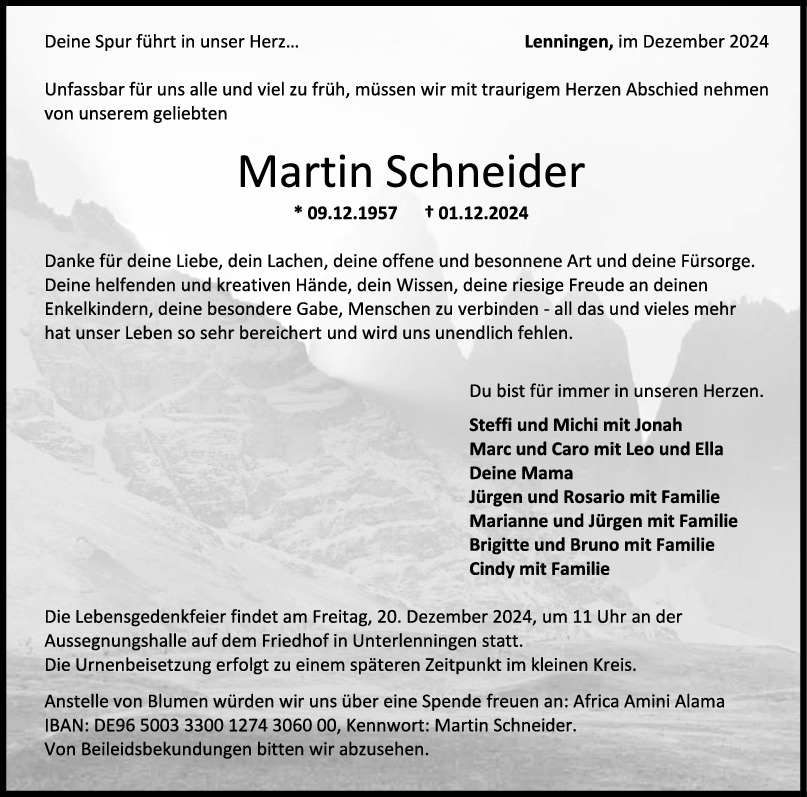 Geschockt über die Nachricht, unfassbar und viel zu früh und unerwartet nehme ich Abschied von Martin Schneider, meinem Schulkameraden und Konfirmandenjahrgang von 1971.