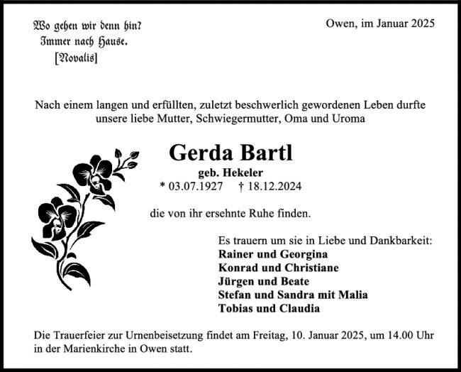 TodesanzeigeVon 5. Januar 20251 Kommentar