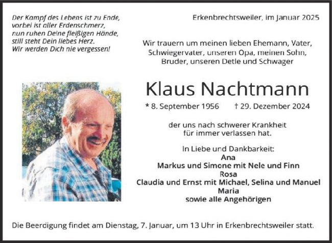 TodesanzeigeVon Benny Kuder5. Januar 20251 Kommentar