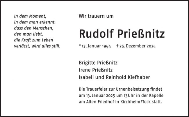 Trauer Rudolf Prießnitz