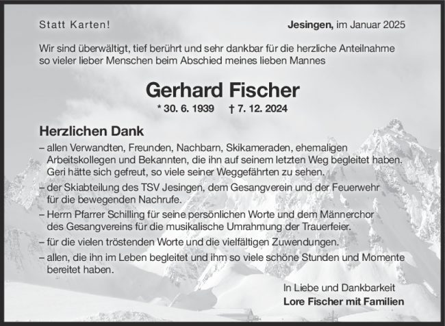 Danksagung Gerhard Fischer