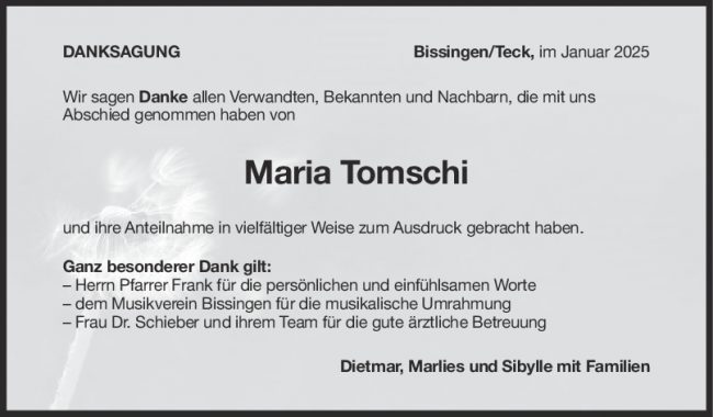 Danksagung Maria Tomschi