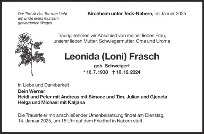 TodesanzeigeVon 11. Januar 20251 Kommentar