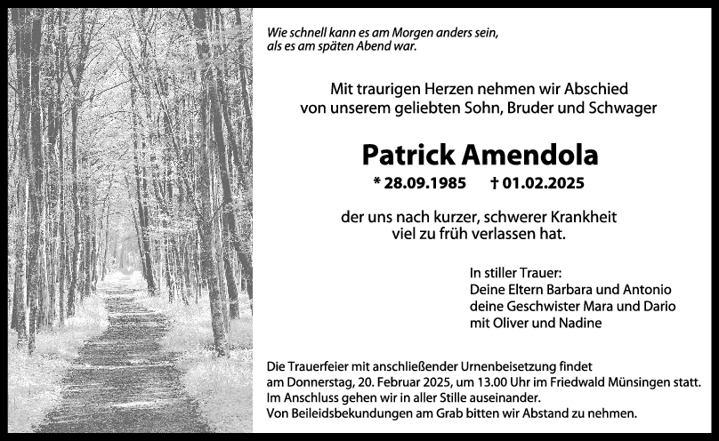 2. Unsere aufrichtige Anteilnahme gilt der Familie Amendola.