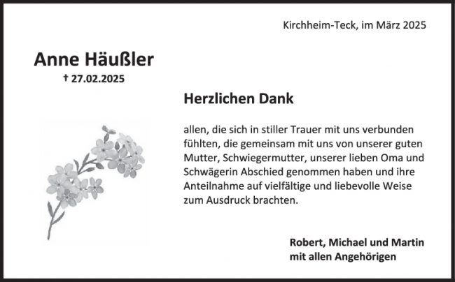 TodesanzeigeVon 15. März 2025Kommentar hinterlassen