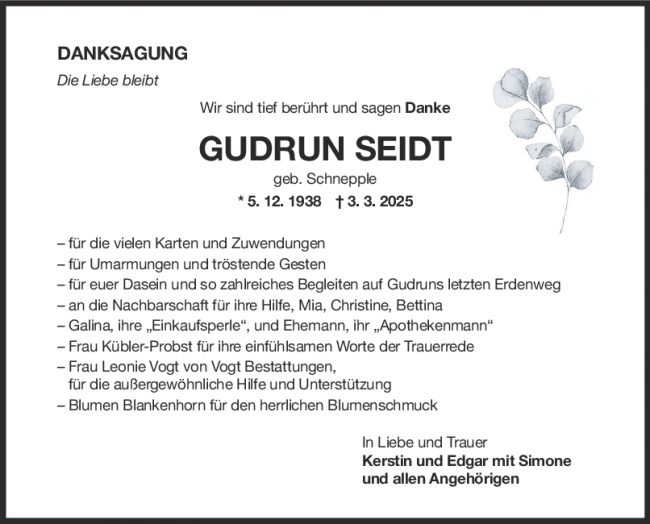 Danksagung Gudrun Seidt