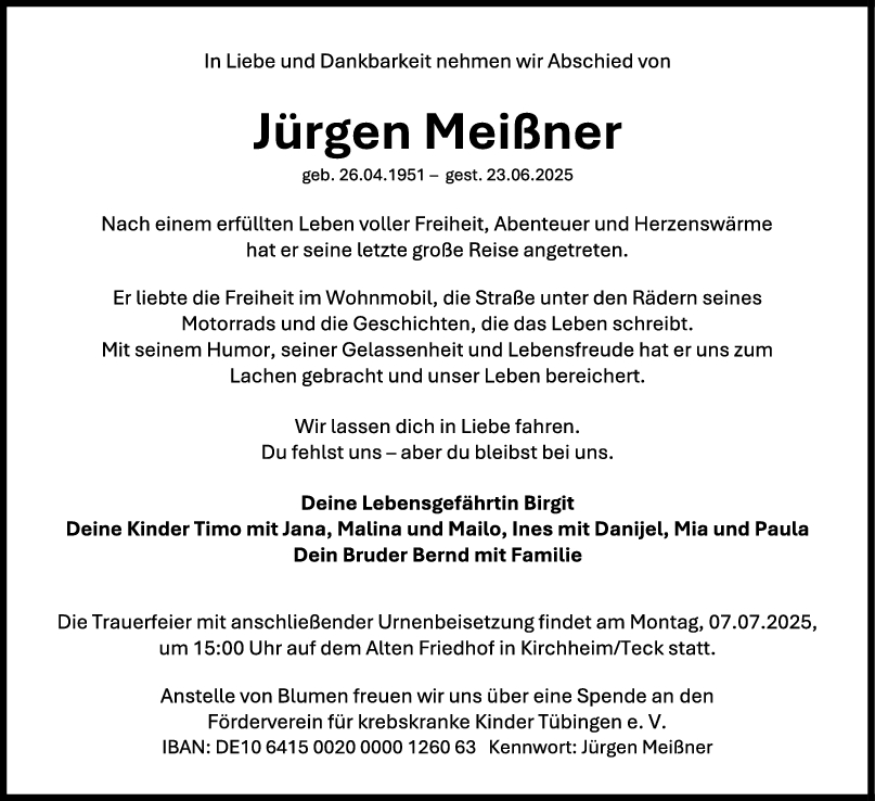 Unsere herzliche Anteilnahme, wir sind traurig und denken an Dich liebe Birgit und an alle Angehörigen.
