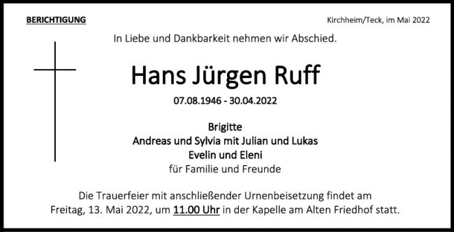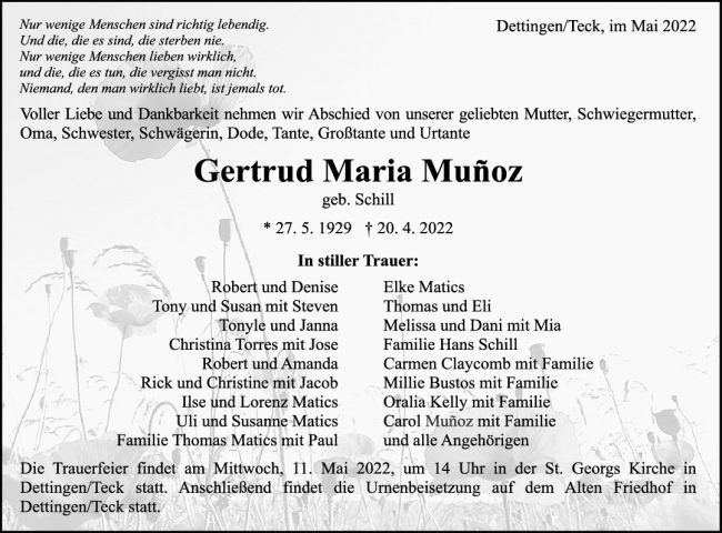 TodesanzeigeVon Benny Kuder7. Mai 2022Kommentar hinterlassen