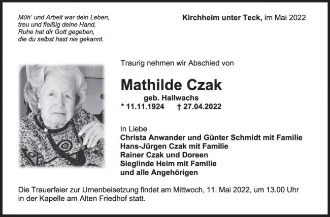 TodesanzeigeVon Benny Kuder11. Mai 2022Kommentar hinterlassen