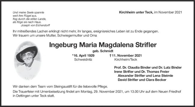 TodesanzeigeVon Benny Kuder28. November 2021Kommentar hinterlassen
