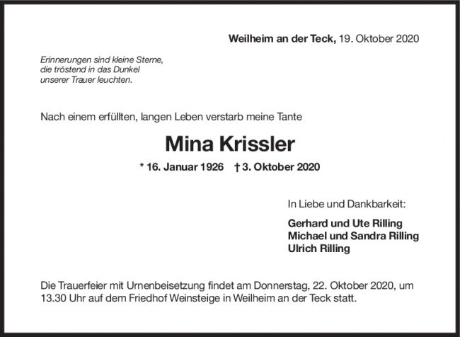 TodesanzeigeVon Benny Kuder18. Oktober 2020Kommentar hinterlassen