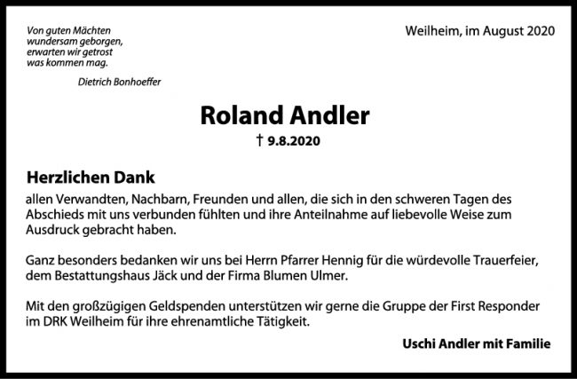 Trauer Roland Andler