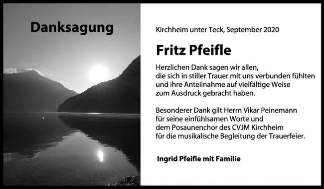 Danksagung Fritz Pfeifle