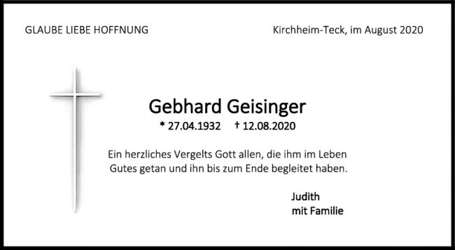 Trauer Gebhard Geisinger
