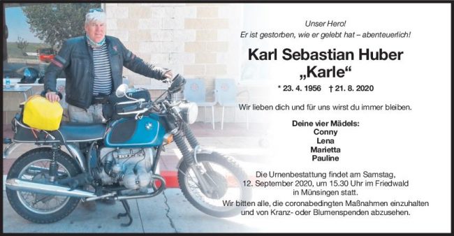 Trauer Karl Sebastian Huber “Karle”