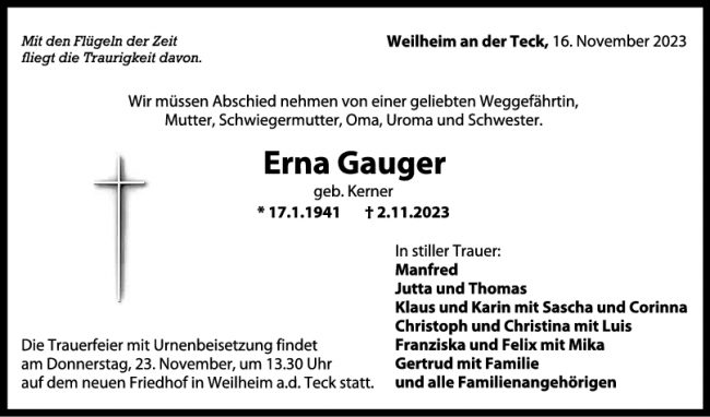 TodesanzeigeVon Benny Kuder19. November 2023Kommentar hinterlassen