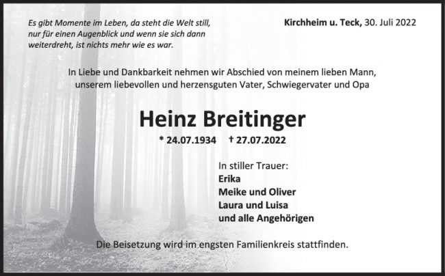 Trauer Heinz Breitinger 30/07/2022