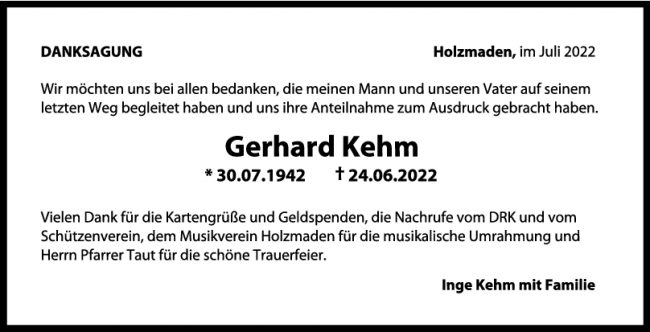 Danksagung Gerhard Kehm 30/07/2022