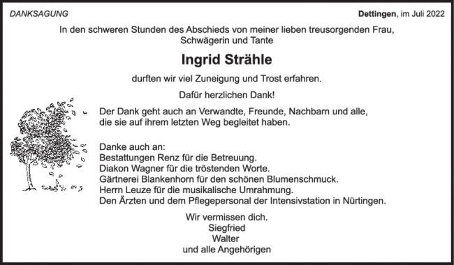 Danksagung Ingrid Strähle 29/07/2022