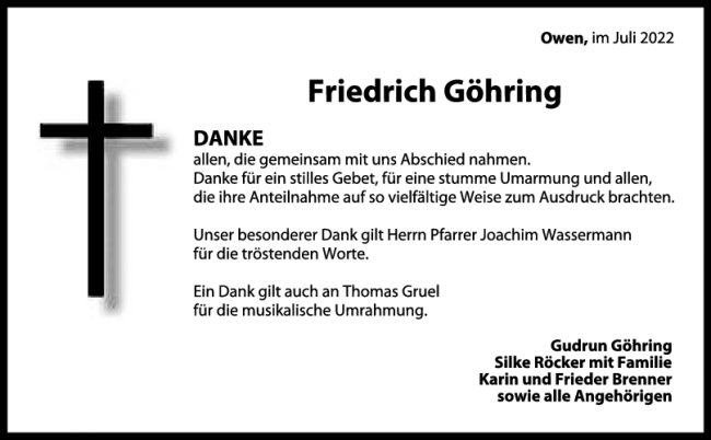 Danksagung Friedrich Göhring 30/07/2022