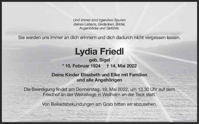Trauer Lydia Friedl 18/05/2022