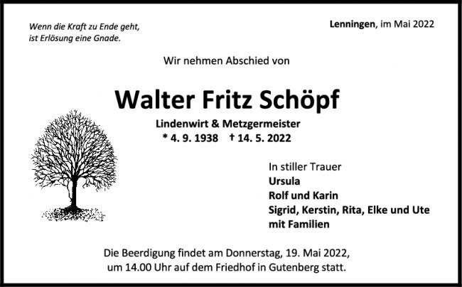 Trauer Walter Fritz Schöpf 18/05/2022