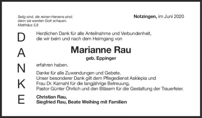 Danksagung Marianne Rau