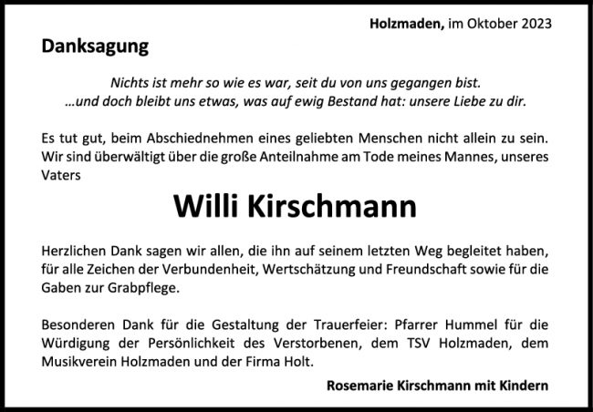 Danksagung Willi Kirschmann