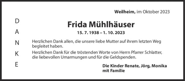 Danksagung Frida Mühlhäuser