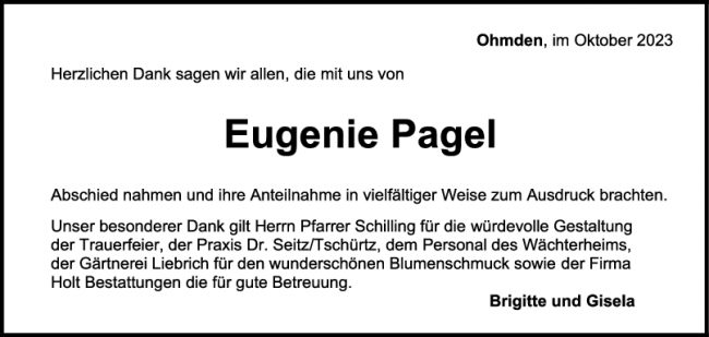 Danksagung Hans Pagel