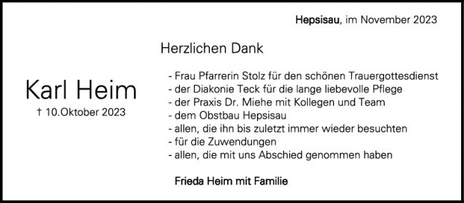 Danksagung Karl Heim