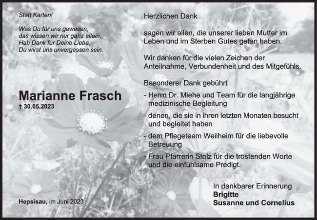 Danksagung Marianne Frasch